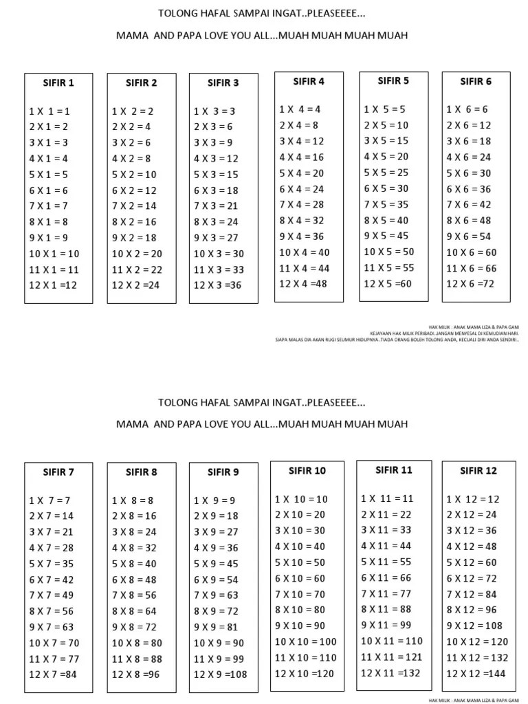 Anda atau aanak anda tidak akan . Tangga ke empat m, tangga ke tiga dm, tangga ke dua cm, tangga ke satu mm. Menghafal sifir yang lebih mudah dahulu seperti sifir 2, 5, 10 dan 11.